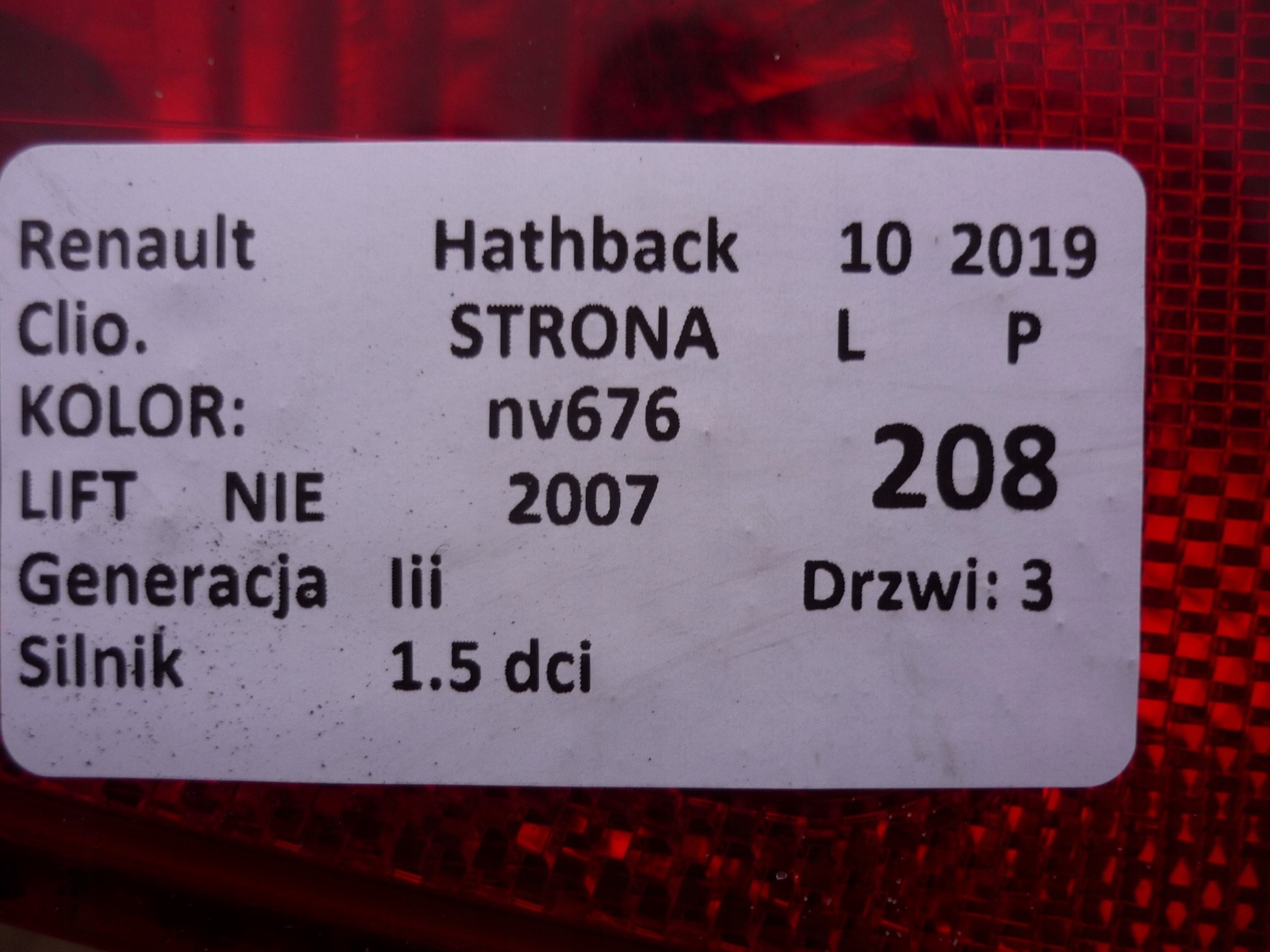 Nazwa: LAMPA LEWA TYŁ RENAULT CLIO III 07R