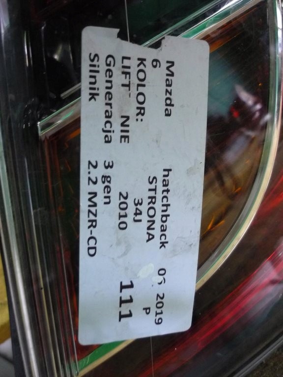 Nazwa: LAMPA PRAWA TYLNA TYŁ MAZDA6 MAZDA 6 08-12