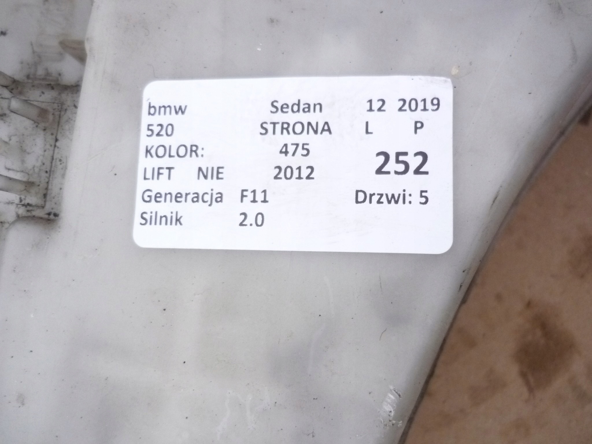 Nazwa: ZBIORNICZEK PŁYNU SPRYSKIWACZY BMW 520 F10